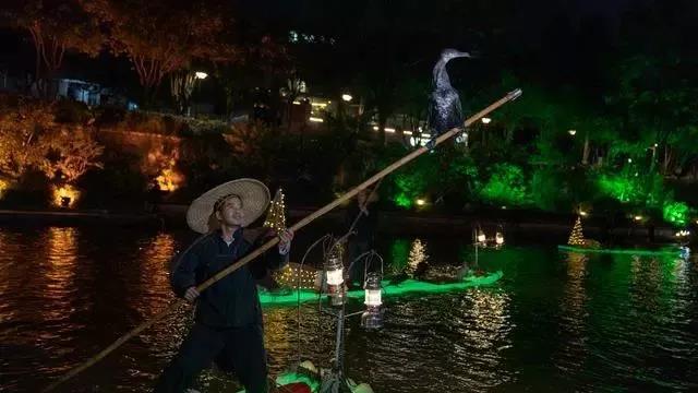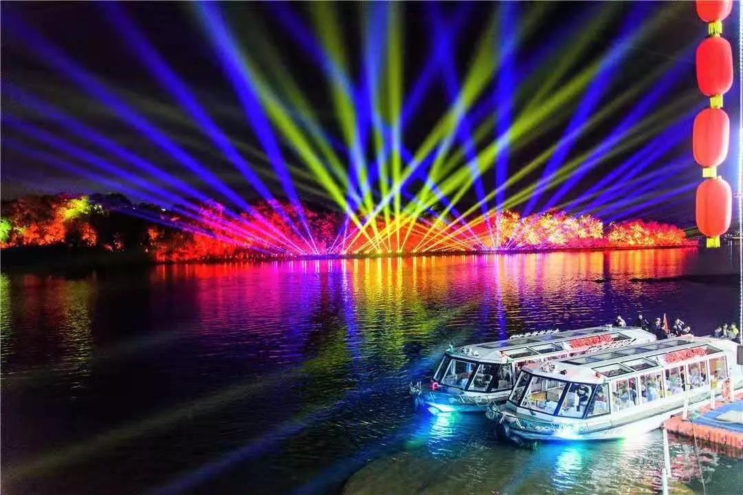 絢麗多彩的燈光映射出如夢如幻的漓江之美