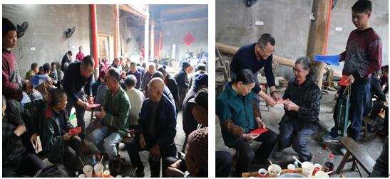 除夕前,當(dāng)大多數(shù)的員工都回家與家人團(tuán)聚時,前期部的經(jīng)理賓澤藝卻還在董事長的帶領(lǐng)下為大碧頭村60歲以上的老人送溫暖、傳溫情,代表董事長給村民們發(fā)過年紅包。