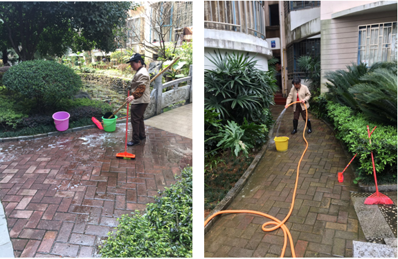 物業(yè)的工作是那樣的平凡普通和枯燥無味,但也就是這些平凡的工作崗位上,有一群人做著不平凡的事。雨季的到來使得小區(qū)地磚上長滿了煩人的青苔,濕滑的青苔雖不至于將人摔倒,但業(yè)主經(jīng)過這些地磚都得小心翼翼,是我們的保潔大姐拿著刷子,將這些地磚上的青