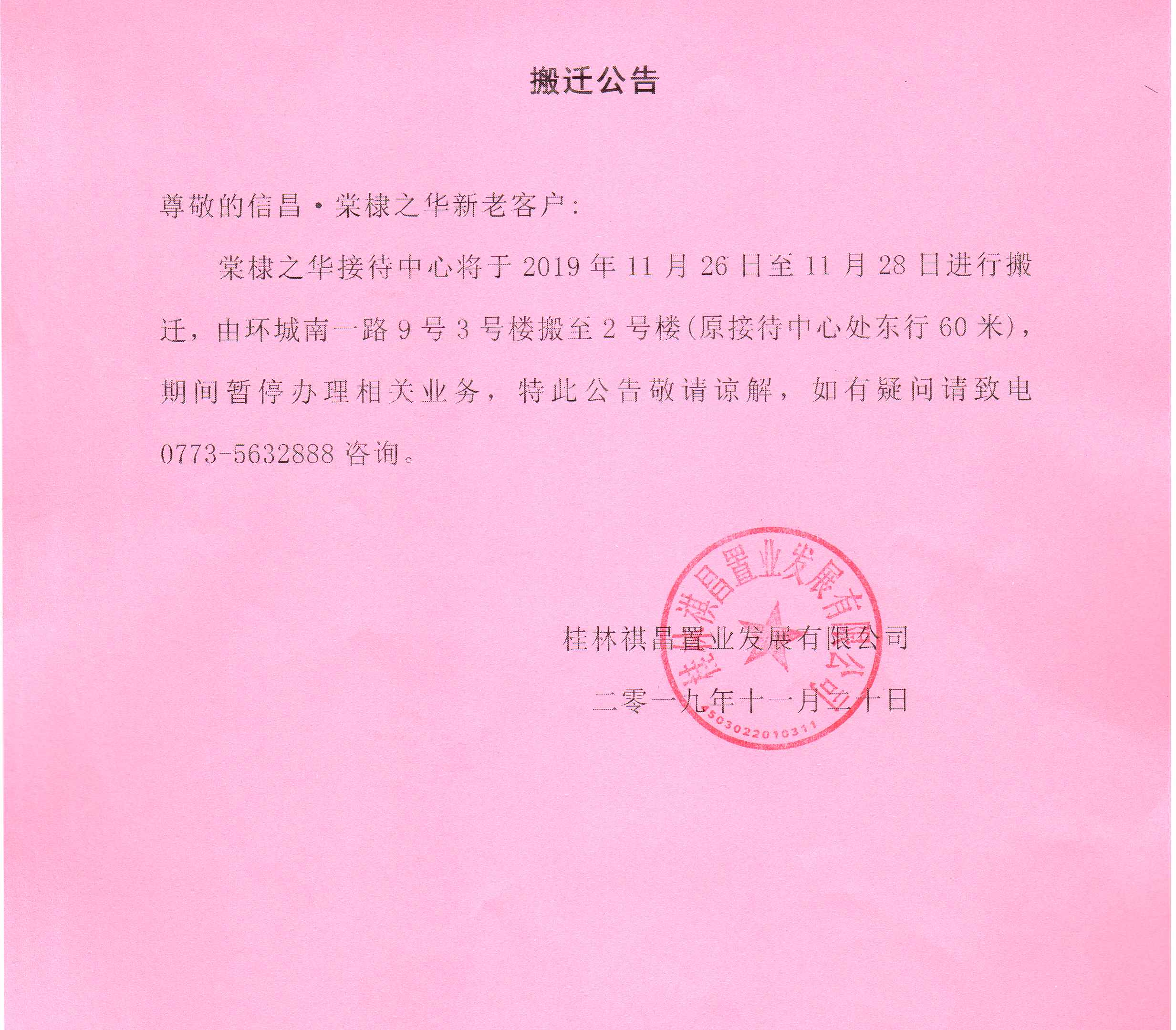 棠棣之華接待中心搬遷公告
